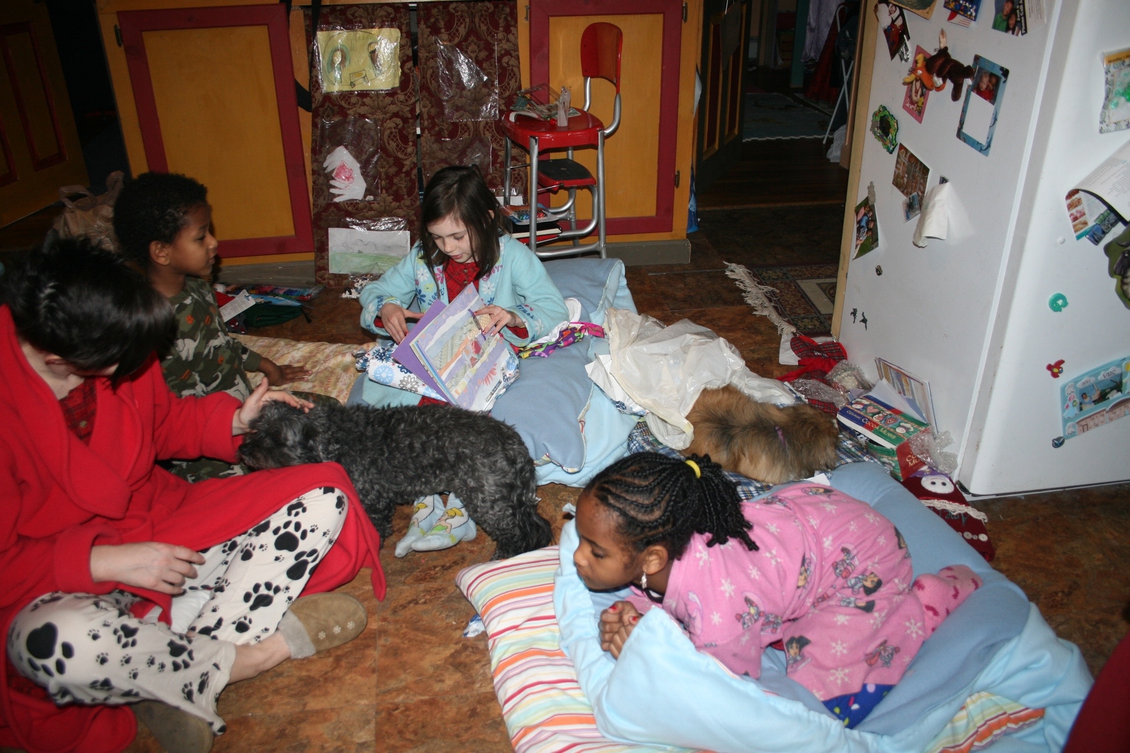 It’s Christmas time in the DuPonte house hold, as the night winds down with the family in bed it’s time to thank my Lord for all the great blessings. The week started of a little rough with my pop going into the hospital. He is doing better but still has a way to go. The blessing for me is that he knows Jesus and that he is his Lord and savior. Christmas this year was great everyone loved their gifts and we loved the family time together. Papa came over dinner and Grammy and Nana came for an early afternoon visit, it was good for her to get out and see the great grand kids. I was amazed at the thought that went into the great gifts this year. Jamie made the kids loung/ sleeping bags, and little iPod touch holders and little G made the girls some scrapbooks while J made A a book. Jamie also found this amazing cross with the nativity scene carved in it. A great new cake book on fairy tale cakes it so cool. Plus I got an iPad yeah ….
