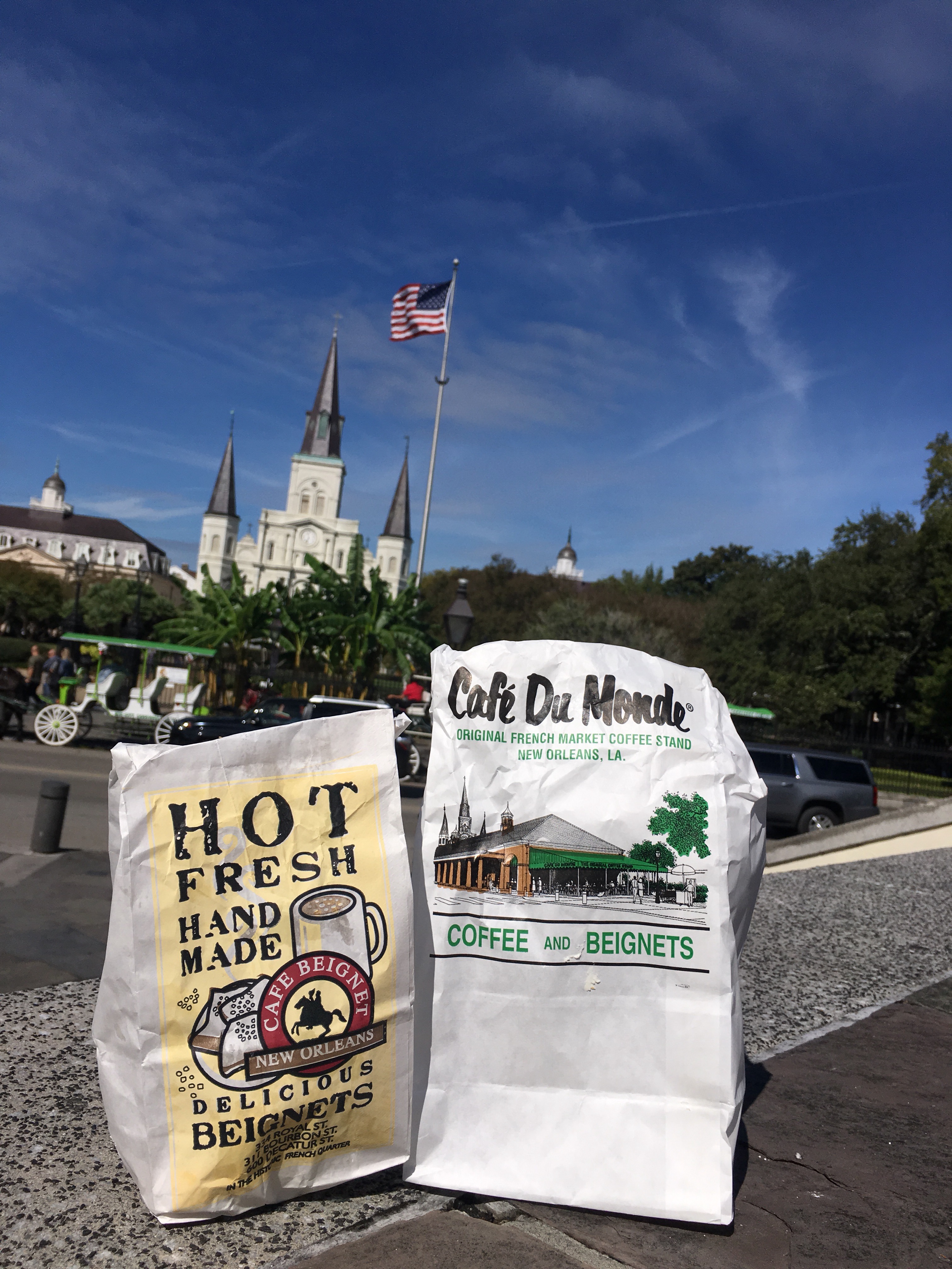 So seated down from Jackson Sq we tried each delicious beignet. While they where both great, the cafe beignet unanimously came up the winner. They where a little flakier and less doughy. The cafe Du Monde has the little under cooked doughy taste to it. Don’t get me wrong would not turn them down lol but thought then other ones where better. Will have to ask Juju on that sweet to do a live comparison lol….